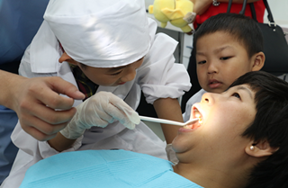 “口福小分队”秉承着全心全意为各社区居民服务的态度,不仅为市民提供口腔检查和基础身体检查,还让社区居民了解自身状况、预防治疗。他们别出心裁,将好玩的游戏、丰富的礼品融入到义诊现场,“寓诊于乐”——让严肃的检查变得放松快乐。
