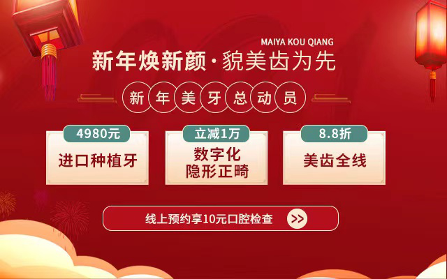 趁着年前带父母看牙,在美食来临之际让父母恢复健康牙齿,能够美美地品尝你亲手做的饭菜,一家乐享团圆饭才算过个幸福年。新年种牙来麦芽享优惠,半口种植牙特价2万起,新年美牙总动员给家人口腔健康,给父母种口好牙,让老人从此丢掉活动假牙,享受一口媲美真牙的“人类第三副牙齿”。