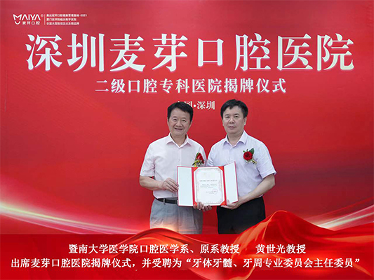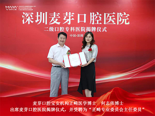 深圳麦芽口腔医院将坚持医疗根本,以“人才立院,专科强院,科教兴院”为宗旨,进一步加强与行业专家建立学术探讨、科研合作、联合会诊的深度合作,打造国内领先的临床诊疗特色和品牌技术优势,麦芽口腔品牌连锁目前拥有医疗从业人员近1000人,由总院长郑苍尚教授领衔、组建的精通智能数字化口腔精确诊疗技术,在口腔种植、正畸、修复、牙周等细分领域各有所长,经验丰富的博硕专家团队,成为医院学科专业建设的中坚力量,特此,荣誉委任:麦芽口腔品牌连锁牙体牙髓牙周学科带头人黄世光教授;麦芽口腔罗湖机构院长田忠奇院长;麦芽口腔宝安机构正畸医学博士何志伟博士分别为重点学科”专业委员会主任委员”。