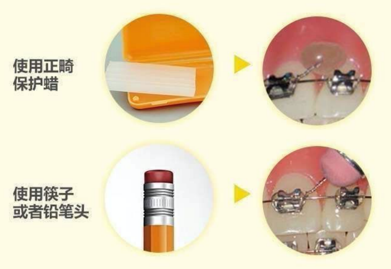 第三、针对末端过长的弓丝,可以用正畸保护蜡封住,以免刮伤口腔粘膜;