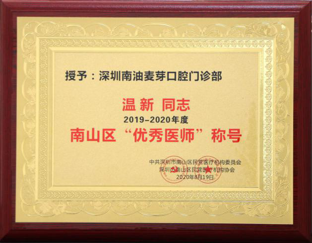 据悉,本次年度表彰旨在大力弘扬“敬佑生命、救死扶伤、甘于奉献、大爱无疆”优良医学传统,营造全社会尊医重卫的良好氛围,激发南山区民营医疗机构医务工作者的工作热情。对于被评为先进人物,身为党员的乔明星医师则谦虚地表示:“非常荣幸能获得南山区民营医疗机构年度优秀医师,我将继续起好党员的带头作用,投入更大的热情到日常工作中,不断精研医技,用心服务好每一位患者,为更多市民送去口福。另外,这份荣誉,不是属于我个人的,它属于麦芽口腔品牌连锁,是我们麦芽人共同的骄傲,更是促进我们不断进步的鼓励与鞭策。”