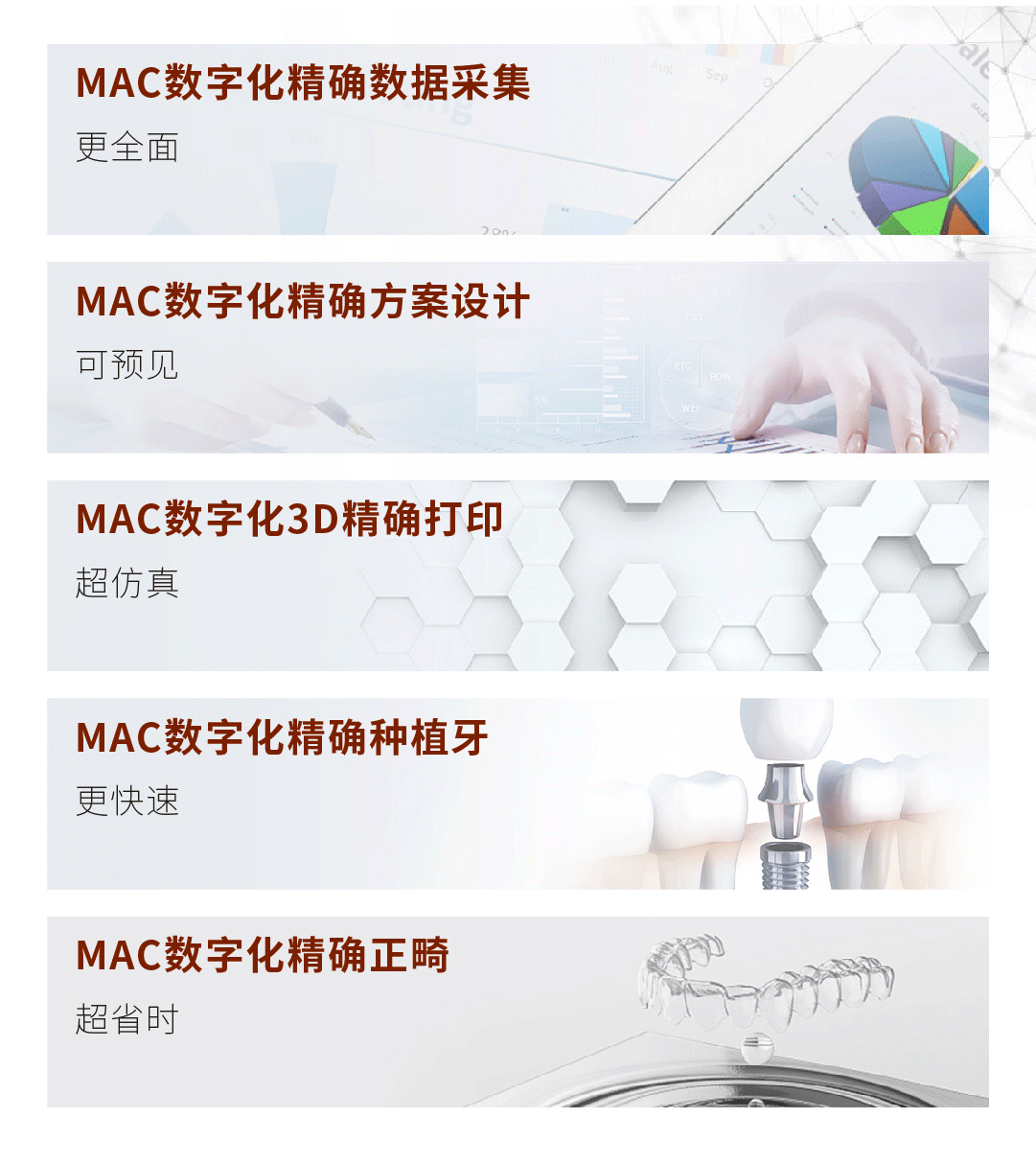 5年来,通过引进国际领先的15项数字化黑科技,完善MAC数字化精确诊疗体系,打造实力强大的博硕领衔专家医疗团队,召开“2015口腔种植新进展研讨会”、“2016数字化口腔种植学术论坛”、“华南疑难种植牙高峰论坛”、“2017国际口腔种植医师学会(ICOI)深圳峰会”、“2018粤港澳大湾区首届隐形正畸学术峰会”、“2019精确正畸深圳研讨峰会”等,麦芽亦步亦趋,举起了促进行业健康发展的一面大旗,不断朝打造数字化口腔标杆企业奋力前行。