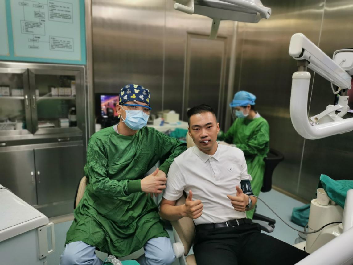 “张岩的深覆合问题比较复杂,重启矫正的意义不大,首先需要解决的是他的中重度牙周炎问题,这会危及口腔健康和身体健康,之后需要进行前牙美学修复,恢复牙齿功能才是最重要的!如果继续拖下去缺失的门牙骨吸收越来越严重,后期要修复就更困难了!”麦芽口腔罗湖机构种植中心主任、新疆医科大学口腔医学硕士田忠奇表示,“前牙美学修复设计很重要,在术前我们会通过全景CT来掌握患者的骨密度、高度、宽度等数据,术中则采取数字化设备全程精准辅助,以确保种植牙方向、角度、位置、深度都与设计力学点保持精准一致,由于张岩前牙缺失的时间比较久,导致他的牙槽骨萎缩,所以会在种植时植入骨粉,以保持种植体周围牙槽骨形态、骨量的稳定性,达到长期稳固美观的效果。”