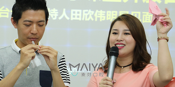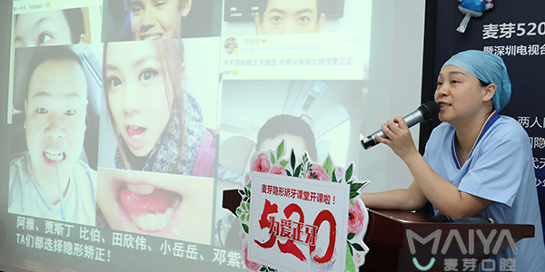 与麦芽口腔有着不解之缘的深圳电视台十佳主持人田欣伟先生,因牙齿不齐、上下颌轻微前突影响侧脸美观,在麦芽口腔行双膜隐形矫正治疗,这次矫牙课堂他也百忙之中来到了现场,与矫牙粉丝亲密互动、用亲身经验回答了矫牙粉丝内心的疑问,并现场示范如何巧妙得快速摘带隐形牙套。