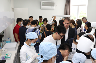 然后Oldroy老师分别讲到了牙齿美白技术的特点、开展牙齿美白业务的方法、氟斑牙牙齿美白技术,同时学员们在课堂现场还进行了简单的牙齿美白操作,之后学员们转场来到了诊疗室,麦芽口腔专门为学员们提供了诊室进行现场牙齿美白实操。在老师的讲解下,牙医们一步一步完成牙齿美白过程。