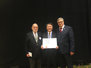 美国当地时间2月17日,在美国新奥尔良举办的2017年国际口腔种植医师学会(ICOI)冬季学术研讨会上,来自中国深圳麦芽口腔的郑苍尚教授接过国际口腔种植医师学会(ICOI)主席Judy教授和国际口腔种植医师学会(ICOI)欧洲区主席Ady Palti教授手中的《国际口腔种植医师学会院士》证书,成为本届大会独版获选国际口腔种植医师学会院士的中国籍专家。
